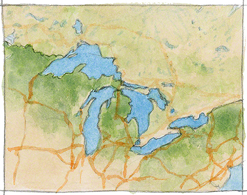 These little maps were created for the same educational materials as the marine watercolors elsewhere in this portfolio. They are used in a four day Training Course for Coastal Managers. Each one depicts a coastal region of the United States where the course is given. And each course is adapted to its particular region.